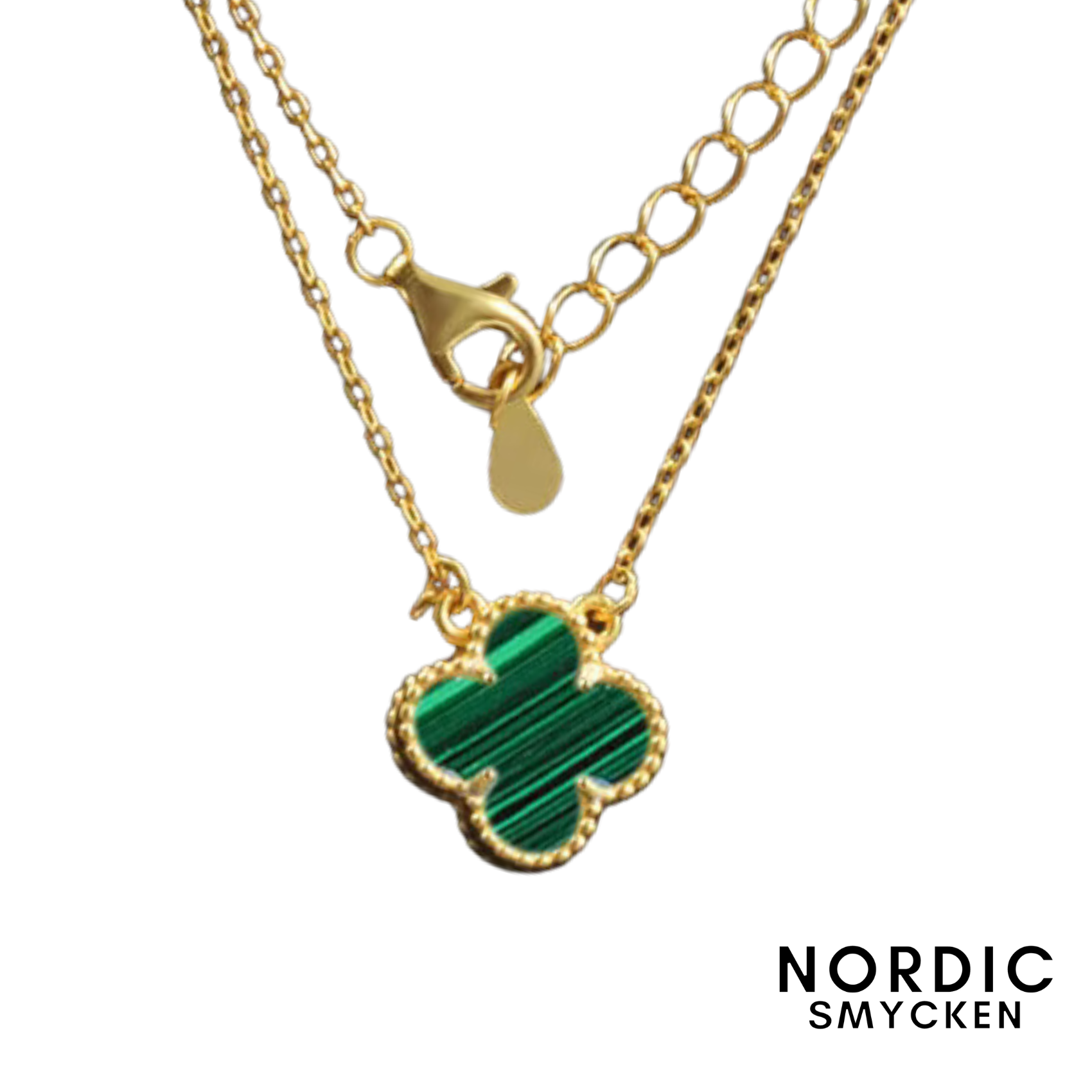 Ge din stil en touch av lyx med Nordic Smycken:s vackra Klöver Halsband, tillverkat av högkvalitativt rostfritt stål för långvarig hållbarhet. De guldiga halsband är pläterat med äkta 18K guld, vilket ger det en lyxig och strålande finish. Designen är prydd med en fyrklöver, symbolen för lycka och framgång, och passar perfekt för att höja vardagslooken eller som en betydelsefull present till någon du bryr dig om.
