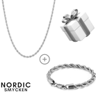 Nordic Smyckens Cordell Set i silver består av både halsband och armband. Materialet är av rostfritt stål, är extremt bra kvalité och tål vatten väldigt bra.
